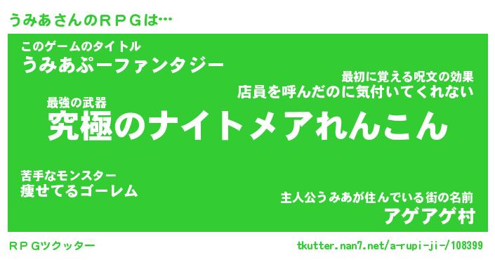 | ファンタジー風あだ名 | 『ウミフェル』『エターナルウミアー』 |