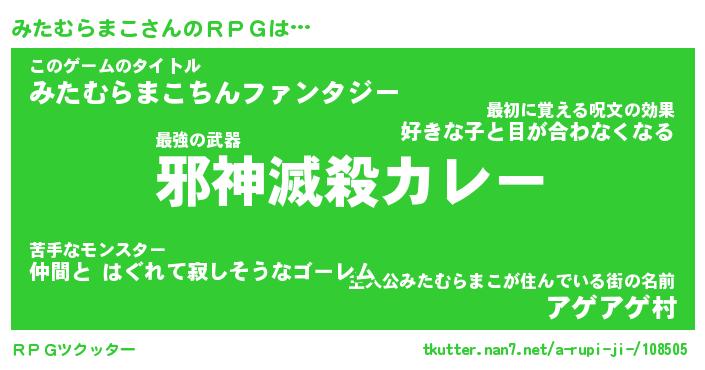 | 男性向けラノベタイトル風あだ名 | 『ミタムラマコアートオンライン』 |