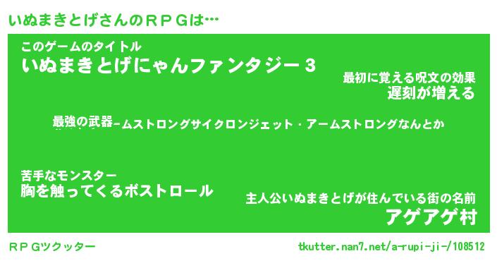 | 伝説のあだ名 | 『封印されし竜騎士いぬまきとげ』 |