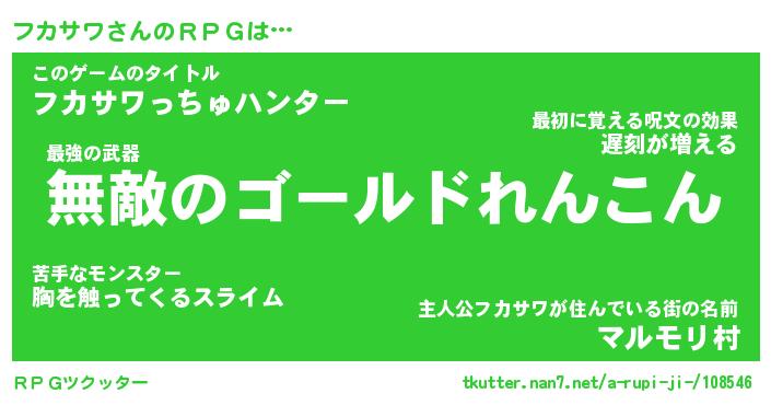 | ファンタジー風あだ名 | 『フカフェル』『エターナルフカサワー』 |