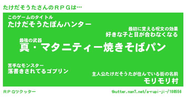 | 伝説のあだ名 | 『封印されしスナイパーたけだそうた』 |