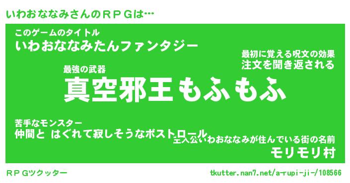 | 伝説のあだ名 | 『封印されし傭兵いわおななみ』 |