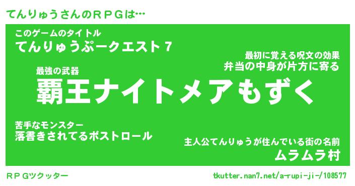 | ファンタジー風あだ名 | 『テンフェル』『エターナルテンリュウー』 |