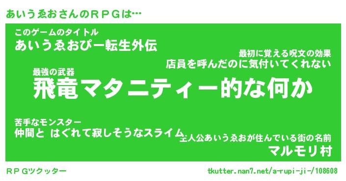| 男性向けラノベタイトル風あだ名 | 『アイウヱオアートオンライン』 |