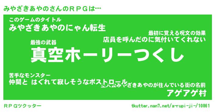 | 男性向けラノベタイトル風あだ名 | 『ミヤザキアヤノアートオンライン』 |