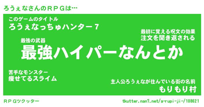 | ヘコむあだ名 | 『ろうにー』『なまこ酢』『ろうお』 |