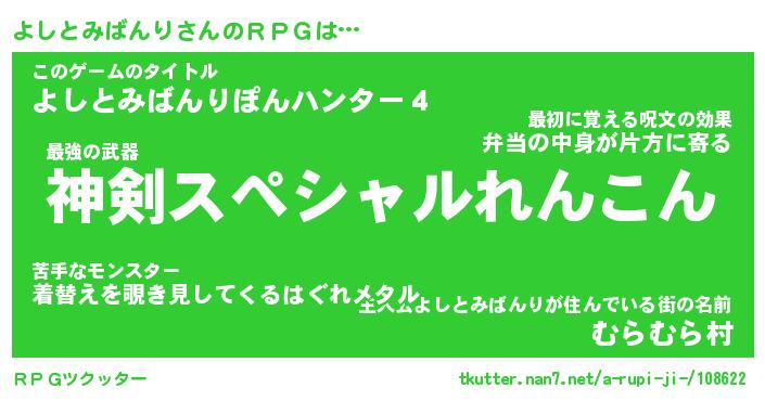 | 男性向けラノベタイトル風あだ名 | 『よしとみばんりの憂鬱』 |