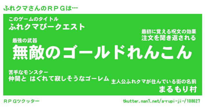 | ツイッター | ふれクマさんのツイッターID『dendenmushi_kun』 |