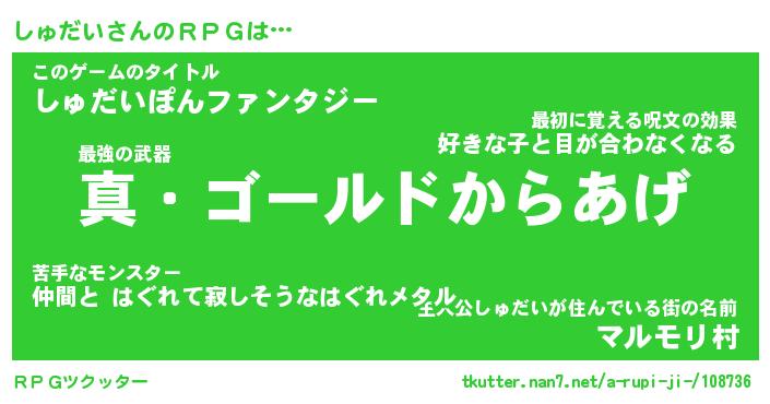 | 胡散臭い通販商品みたいなあだ名 | 『億万長者になれる霊験あらたかなお札…その名も「しゅだい」』 |