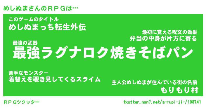 | 男性向けラノベタイトル風あだ名 | 『メシヌマアートオンライン』 |