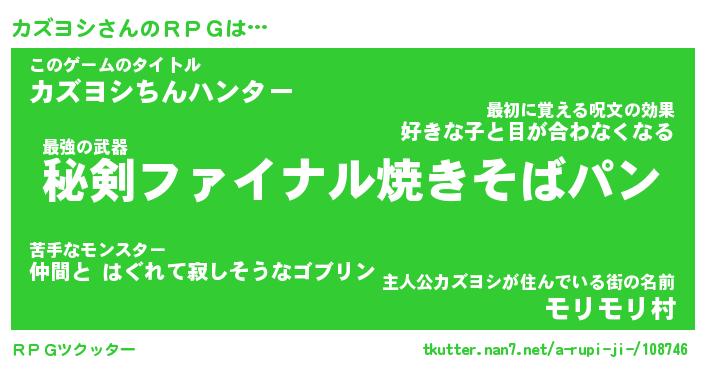 | 意味不明あだ名 | 『ペロリンカズヨシ』『永久保存カズヨシ』 |