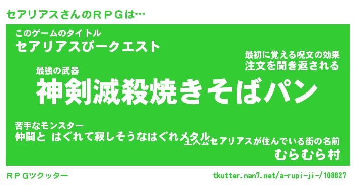 | ヒーロー風カッコイイあだ名 | 『スーパーセアリアス』『暗黒騎士セア』 |