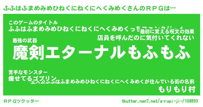 | 伝説のあだ名 | 『伝説の傭兵ふふはふまめみめひねくにねくにへくみめく』 |