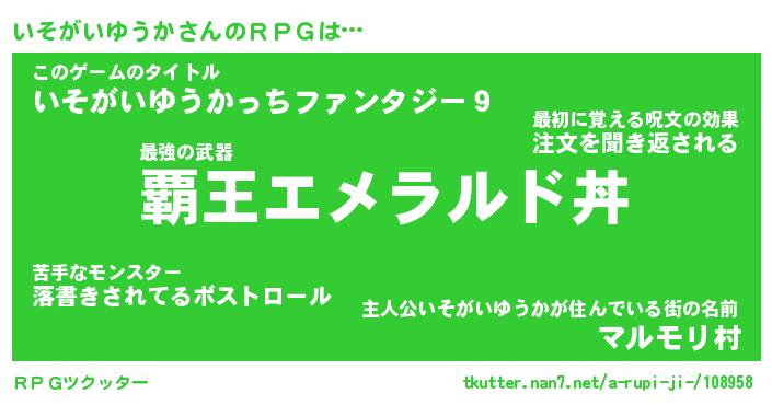 | 胡散臭い通販商品みたいなあだ名 | 『億万長者になれる霊験あらたかなお札…その名も「いそがいゆうか」』 |