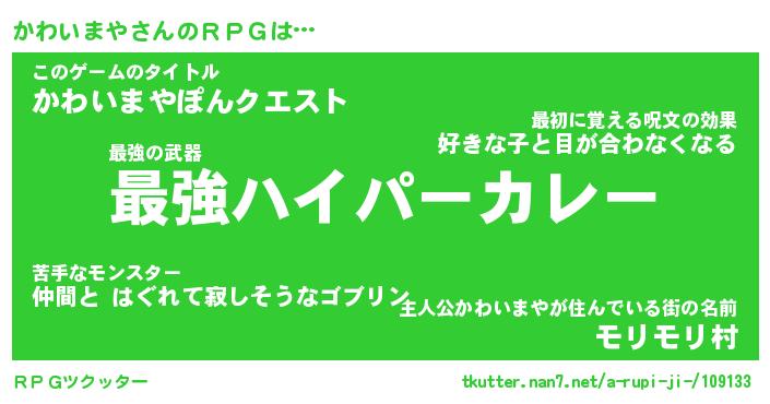 | ファンタジー風あだ名 | 『カワフェル』『エターナルカワイマヤー』 |