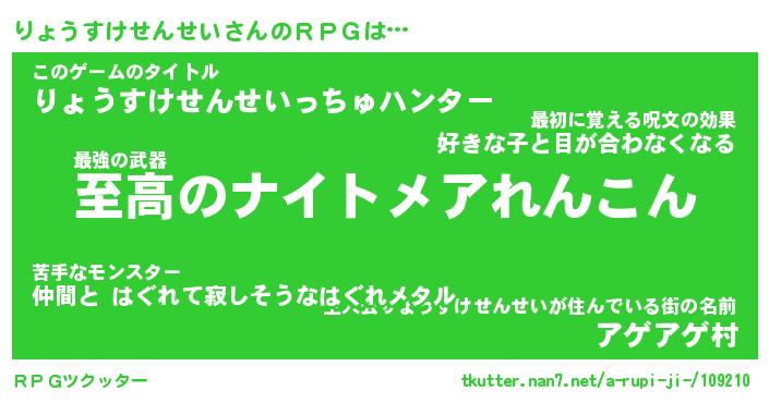 | 男性向けラノベタイトル風あだ名 | 『リョウスケセンセイアートオンライン』 |