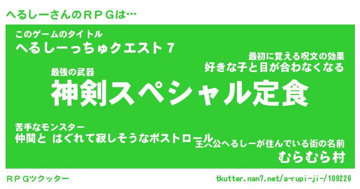 | 男性向けラノベタイトル風あだ名 | 『へるしーの憂鬱』 |