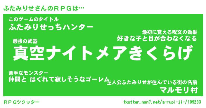 | ヒーロー風カッコイイあだ名 | 『スーパーフタミリセ』『幻影騎士フタ』 |