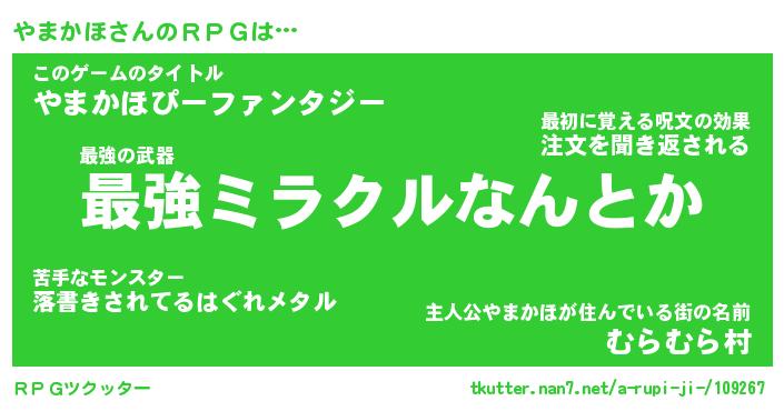 | 伝説のあだ名 | 『不死鳥の竜騎士やまかほ』 |
