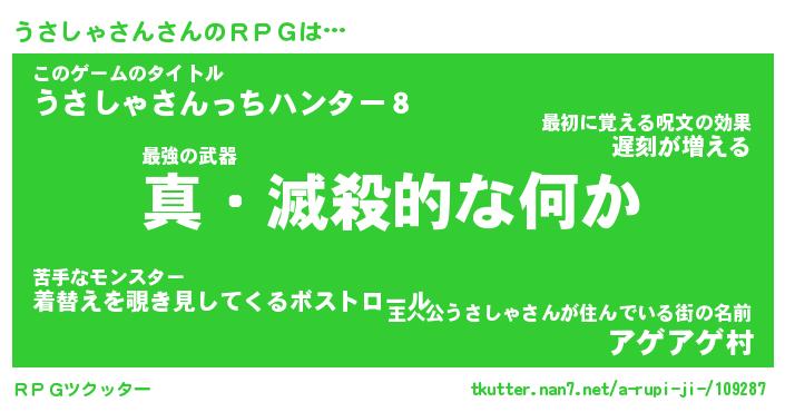 | 伝説のあだ名 | 『封印されしスナイパーうさしゃさん』 |