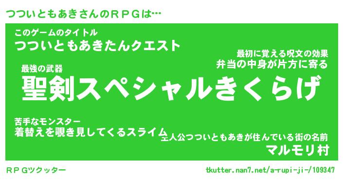 | 伝説のあだ名 | 『伝説の竜騎士つついともあき』 |