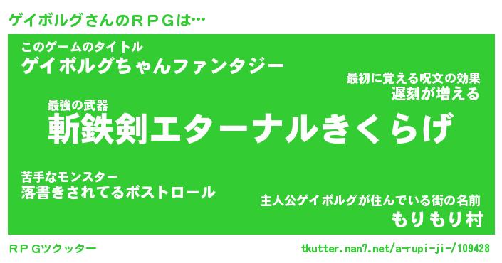| ファンタジー風あだ名 | 『ゲイフェル』『エターナルゲイボルグー』 |