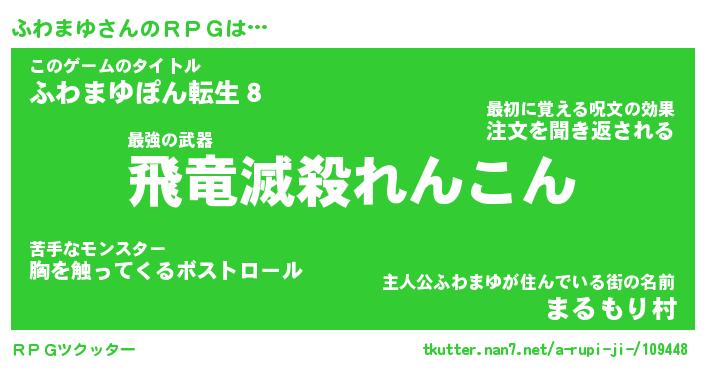 | 男性向けラノベタイトル風あだ名 | 『フワマユアートオンライン』 |