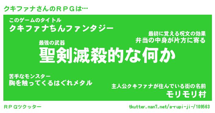 | 男性向けラノベタイトル風あだ名 | 『クキファナの憂鬱』 |