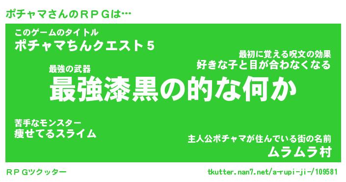| ヒーロー風カッコイイあだ名 | 『スーパーポチャマ』『幻影騎士ポチ』 |