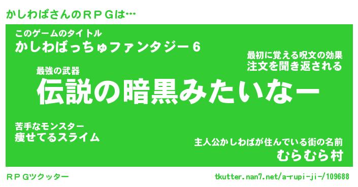 | ファンタジー風あだ名 | 『カシフェル』『エターナルカシワバー』 |