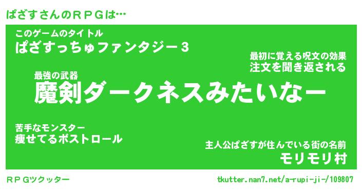 | ファンタジー風あだ名 | 『パザフェル』『エターナルパザスー』 |