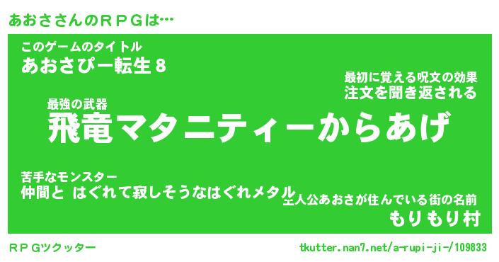 | 伝説のあだ名 | 『封印されしスナイパーあおさ』 |