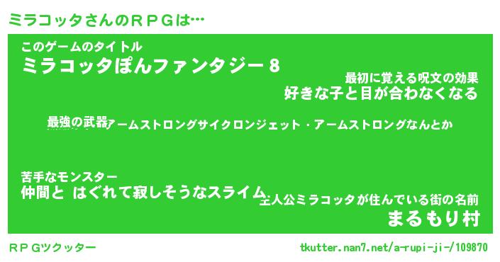 | 男性向けラノベタイトル風あだ名 | 『ミラコッタアートオンライン』 |
