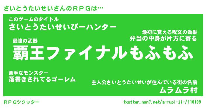 | 男性向けラノベタイトル風あだ名 | 『サイトウタイセイアートオンライン』 |
