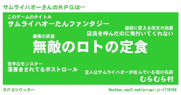 | 男性向けラノベタイトル風あだ名 | 『サムライハオーアートオンライン』 |