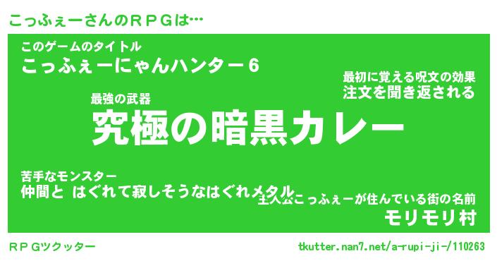 | ファンタジー風あだ名 | 『コッフェル』『エターナルコッフェーー』 |