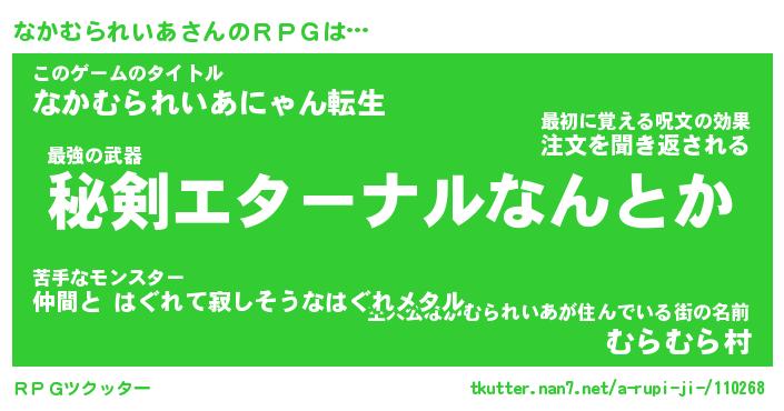 | 伝説のあだ名 | 『伝説の傭兵なかむられいあ』 |