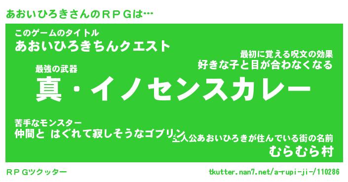 | 伝説のあだ名 | 『封印されしスナイパーあおいひろき』 |