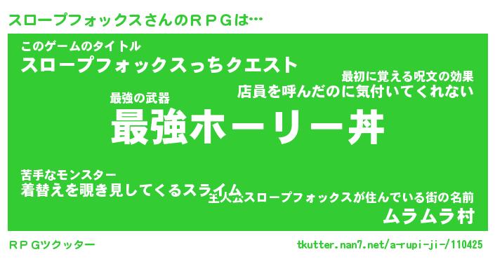 | 料理風あだ名 | 『節約★スロープフォックスと油揚げの玉子丼』 |