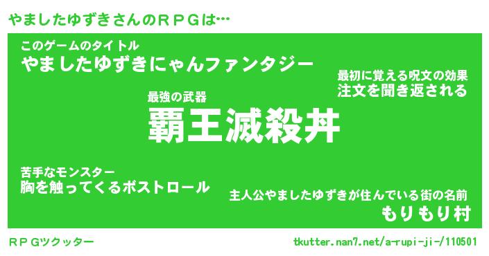 | 男性向けラノベタイトル風あだ名 | 『ヤマシタユズキアートオンライン』 |