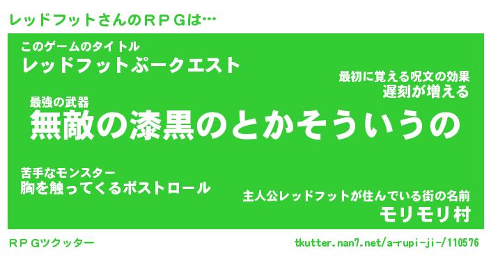 | 男性向けラノベタイトル風あだ名 | 『レッドフットアートオンライン』 |