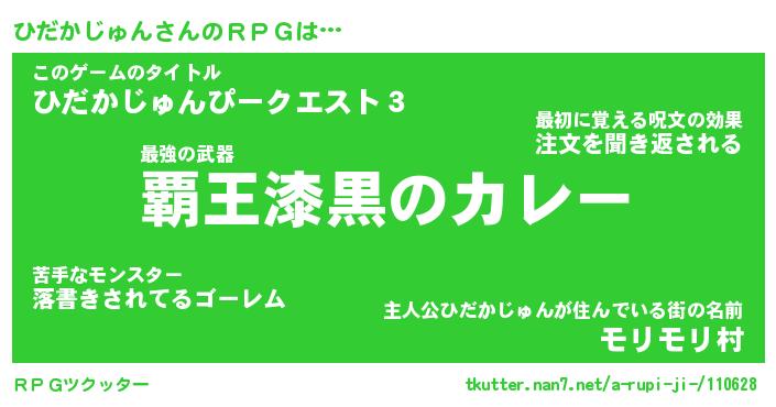 | 男性向けラノベタイトル風あだ名 | 『ヒダカジュンアートオンライン』 |