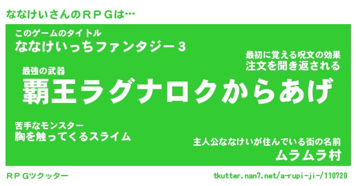 | 男性向けラノベタイトル風あだ名 | 『ナナケイアートオンライン』 |