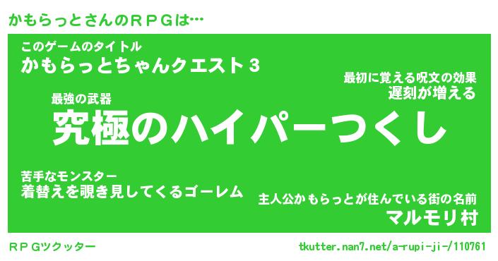 | 胡散臭い通販商品みたいなあだ名 | 『モテモテ間違いなしブレスレット…その名も「かもらっと」』 |