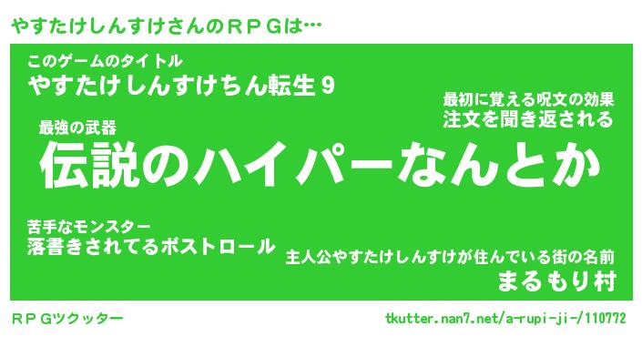 | 男性向けラノベタイトル風あだ名 | 『やすたけしんすけの憂鬱』 |