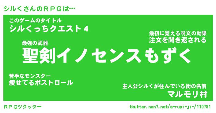 | 男性向けラノベタイトル風あだ名 | 『シルくの憂鬱』 |