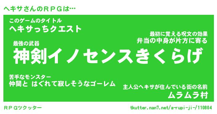 | 料理風あだ名 | 『節約★ヘキサと油揚げの玉子丼』 |