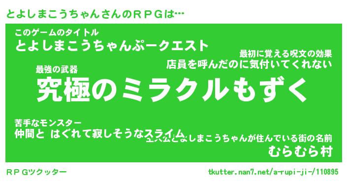 | 伝説のあだ名 | 『不死鳥の竜騎士とよしまこうちゃん』 |