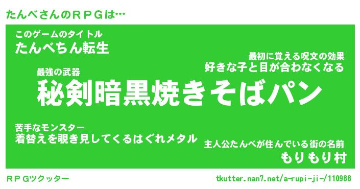 | 男性向けラノベタイトル風あだ名 | 『たんべの憂鬱』 |