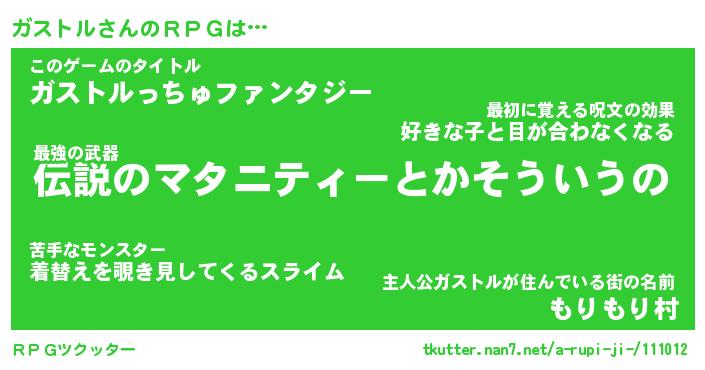 | ファンタジー風あだ名 | 『ガスフェル』『エターナルガストルー』 |